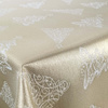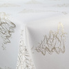 Dwustronne, praktyczne i atrakcyjne obrusy poliestrowe z powłoką plamoodporną. Powłoka nie pozwala na wchłanianie płynów i chroni obrusy przed trwałym zabrudzeniem. Tkanina idealnie układa sie na krawędziach stołu. Polska tkanina i produkcja. Zamówienia rozmiarów niestandardowych realizujemy na specjalne życzenie. Skład: 84% PES (poliester) / 16% NITKA METALIZOWANA. Temperatura prania 30°C, prasowania 250°C. Gramatura 185 gsm. Oeko-Tex Standard 100.