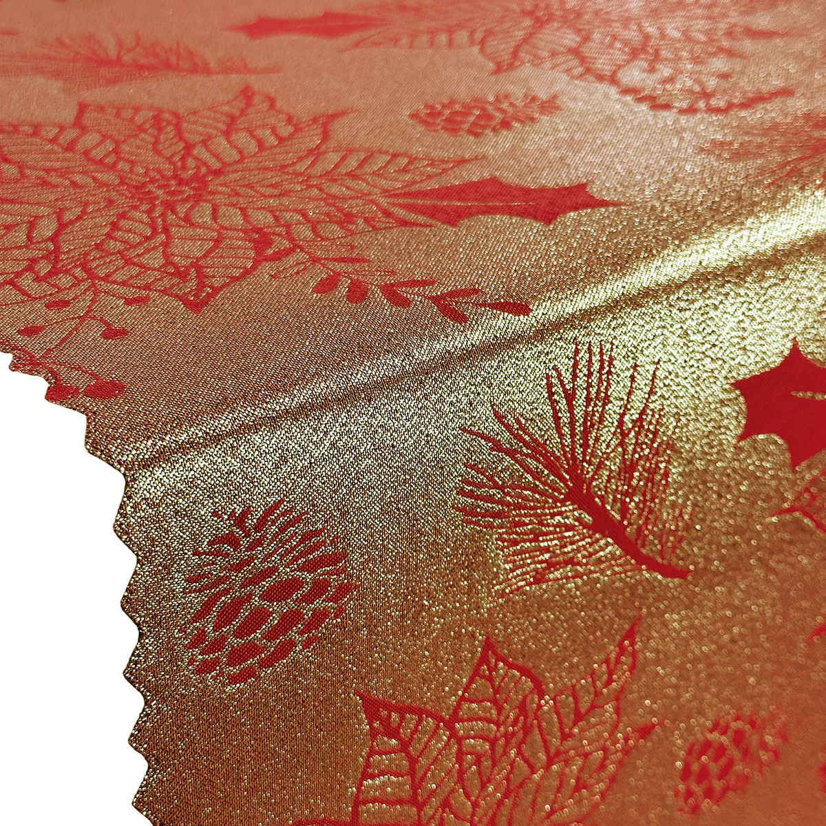 Dwustronne, praktyczne i atrakcyjne obrusy poliestrowe z powłoką plamoodporną. Powłoka nie pozwala na wchłanianie płynów i chroni obrusy przed trwałym zabrudzeniem. Tkanina idealnie układa sie na krawędziach stołu. Polska tkanina i produkcja. Zamówienia rozmiarów niestandardowych realizujemy na specjalne życzenie. Skład: 82% PES (poliester) / 18% NITKA METALIZOWANA. Temperatura prania 30°C, prasowania 250°C. Gramatura 140 gsm. Oeko-Tex Standard 100.