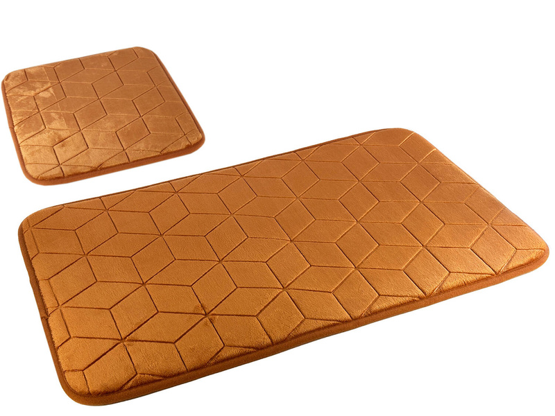 Fürdőszoba szőnyeg: Puha poliészter mikroflanellból, szivaccsal töltve, csúszásmentes felületen. Elegáns, domborított 3D mintákban. Csúszásmentes latex alapon. Ajánlott mosás: 30° C.