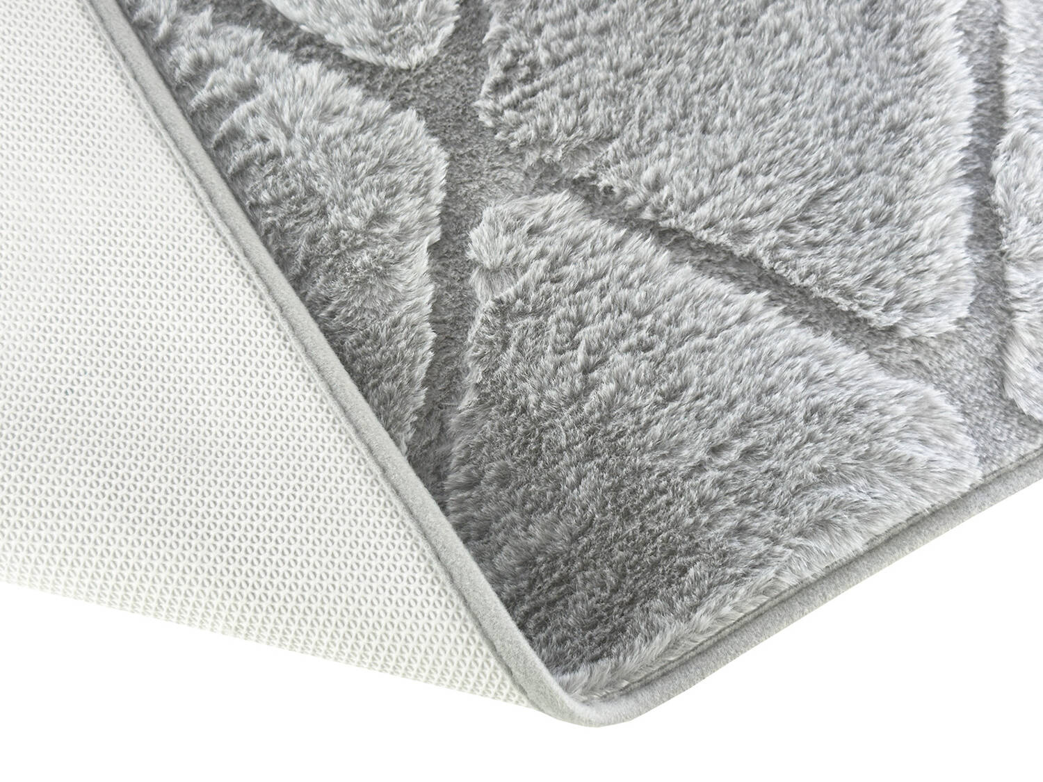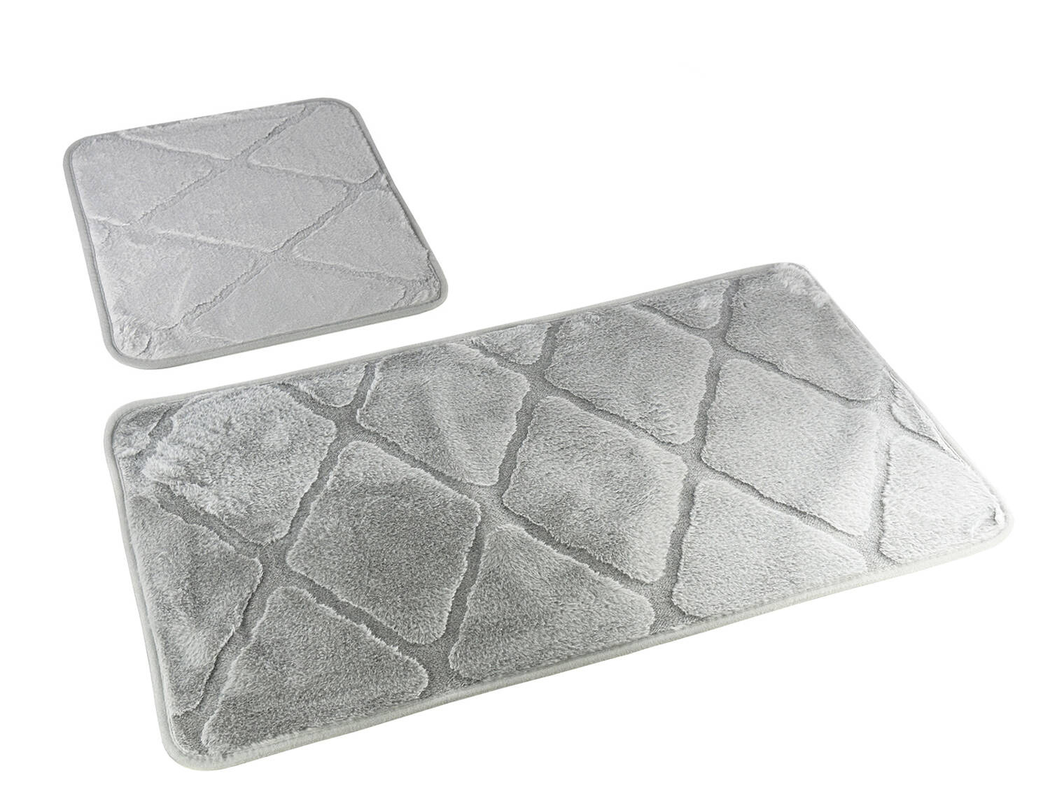 Fürdőszoba szőnyeg: Puha poliészter mikroflanellból, szivaccsal töltve, csúszásmentes felületen. Elegáns, domborított 3D mintákban. Csúszásmentes latex alapon. Ajánlott mosás: 30° C.