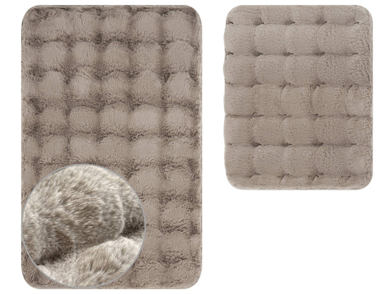 Egyszínű jacquard mintás szőnyegek, puha, hosszú poliészter szálból, csúszásmentes latex alján. Mosási hőmérséklet 30 ° C. 100% poliészter mikroszálas. A függesztett WC-tálakhoz igazodik.