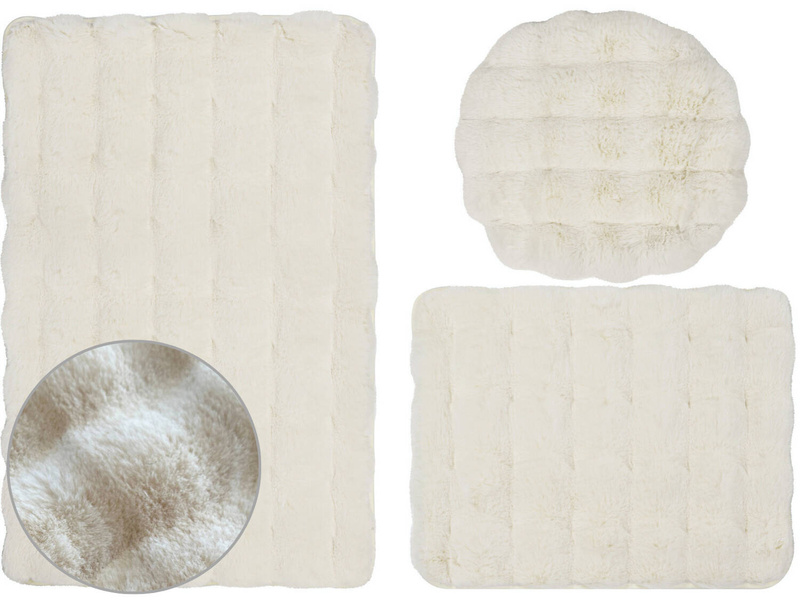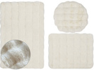 • Egyszínű jacquard mintás szőnyegek, puha, hosszú poliészter szálból, csúszásmentes latex alján. Mosási hőmérséklet 30 ° C. 100% poliészter mikroszálas. 3 részes szett fedéllel, WC-üléshuzattal.