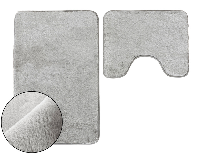 Egyszínű jacquard mintás szőnyegek, puha, hosszú poliészter szálból, csúszásmentes latex alján. Mosási hőmérséklet 30 ° C. 100% poliészter mikroszálas. A függesztett WC-tálakhoz igazodik.
