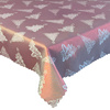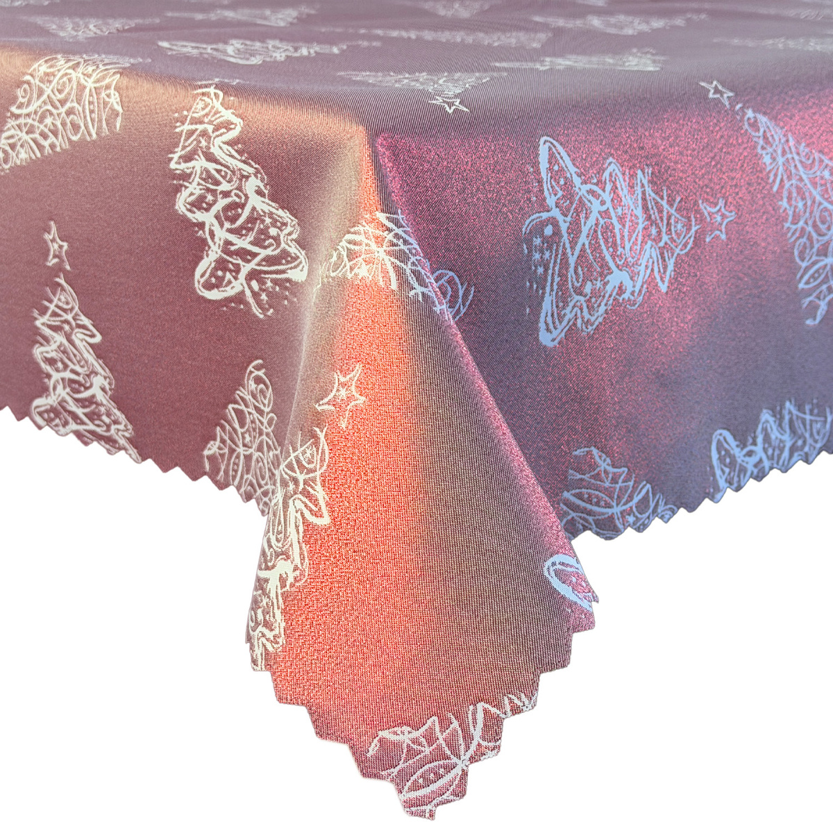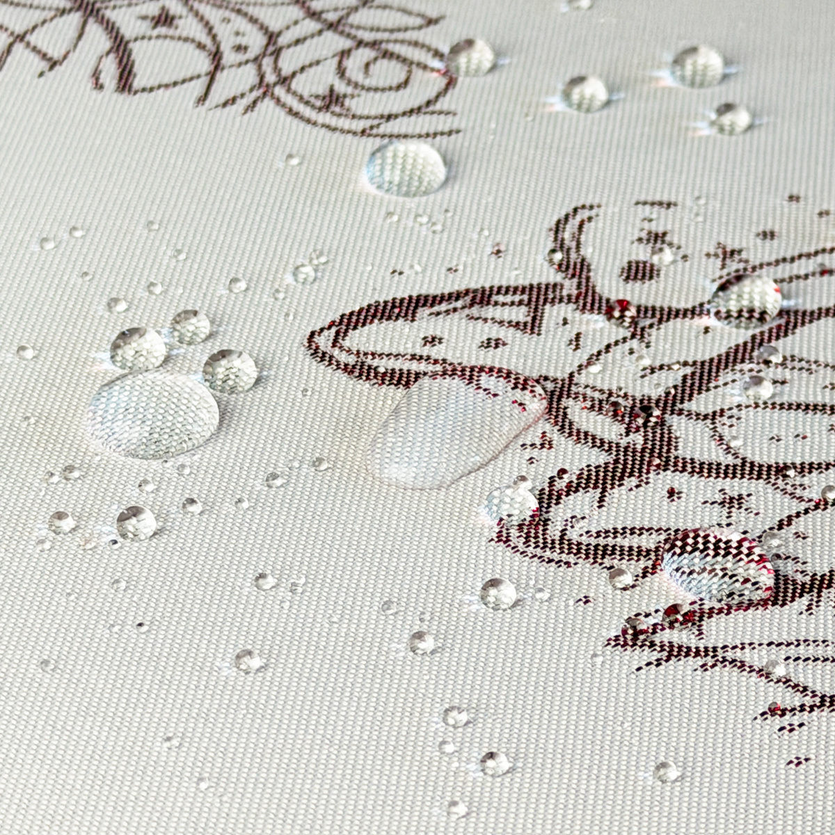 Dwustronne, praktyczne i atrakcyjne obrusy poliestrowe z powłoką plamoodporną. Powłoka nie pozwala na wchłanianie płynów i chroni obrusy przed trwałym zabrudzeniem. Tkanina idealnie układa sie na krawędziach stołu. Polska tkanina i produkcja. Zamówienia rozmiarów niestandardowych realizujemy na specjalne życzenie. Skład: 84% PES (poliester) / 16% NITKA METALIZOWANA. Temperatura prania 30°C, prasowania 250°C. Gramatura 185 gsm. Oeko-Tex Standard 100.