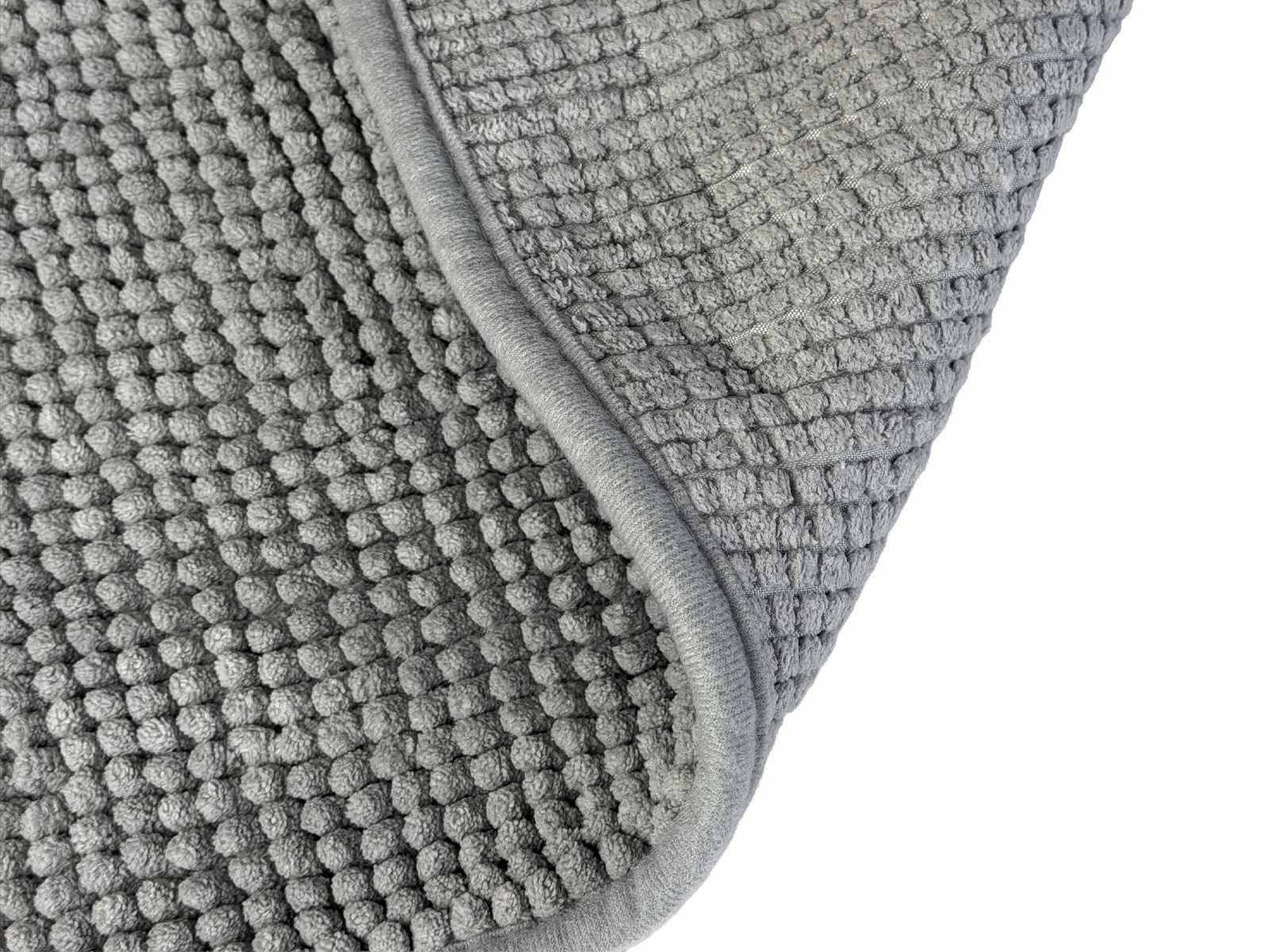 Egyszínű jacquard mintás szőnyegek, puha, hosszú poliészter szálból, csúszásmentes latex alján. Mosási hőmérséklet 30 ° C. 100% poliészter mikroszálas. A függesztett WC-tálakhoz igazodik.