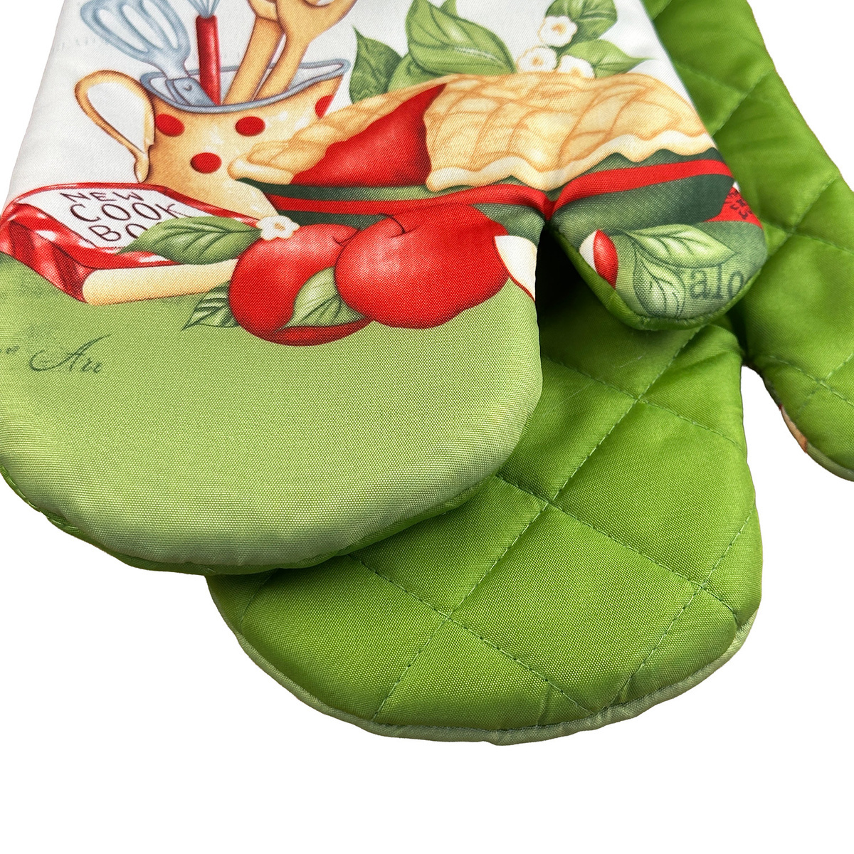 Komplet 2 rękawic kuchennych z nadrukowanym motywem, z magnesem. Rękawice chronią przed poparzeniem. Rozmiar rękawic: 16x27 cm. Materiał 100% poliester, wypełnienie z 100% włókniny poliestrowej. Komplet złożony z 2 szt. rękawic (prawa i lewa). Temperatura prania 30°C.