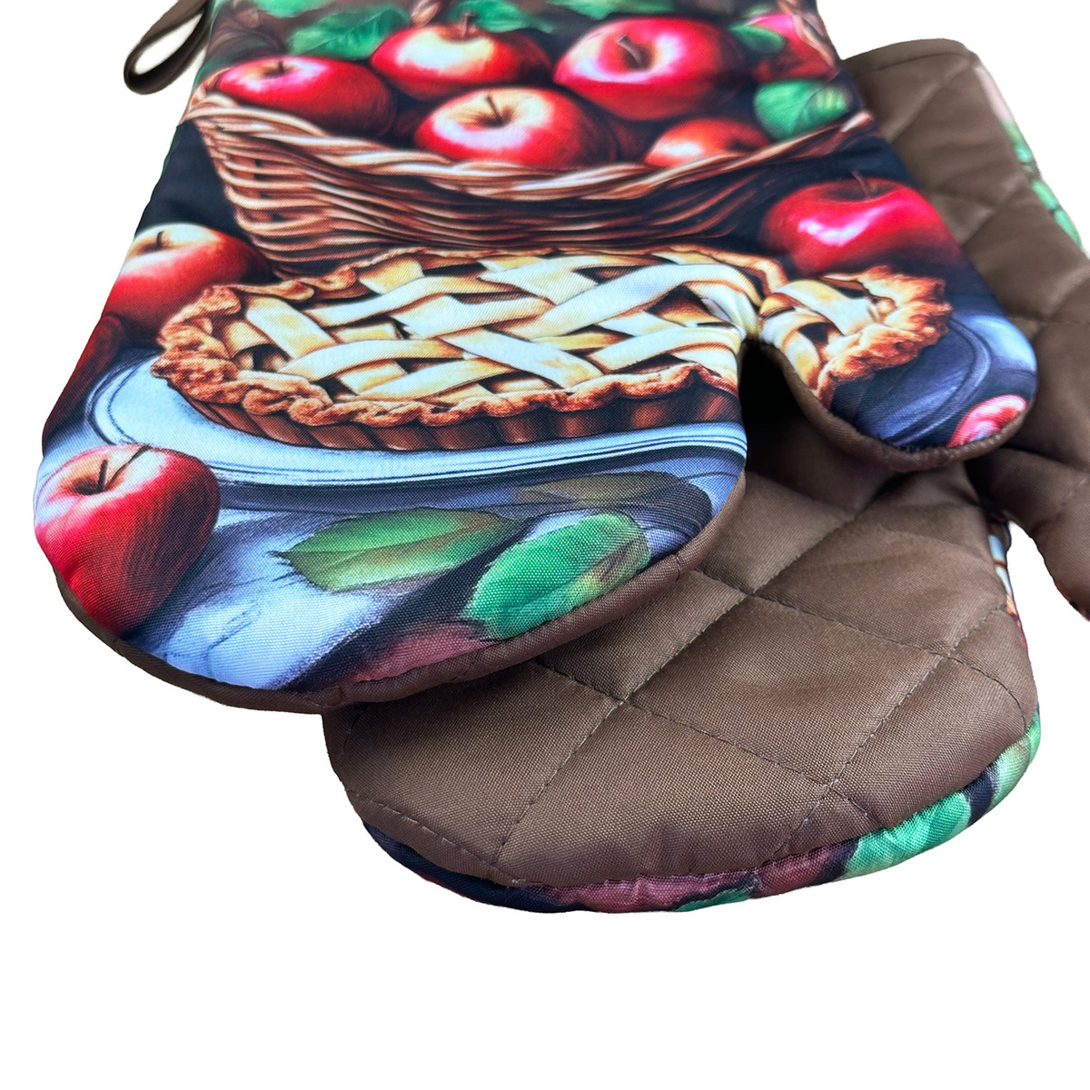 Komplet 2 rękawic kuchennych z nadrukowanym motywem, z magnesem. Rękawice chronią przed poparzeniem. Rozmiar rękawic: 16x27 cm. Materiał 100% poliester, wypełnienie z 100% włókniny poliestrowej. Komplet złożony z 2 szt. rękawic (prawa i lewa). Temperatura prania 30°C.