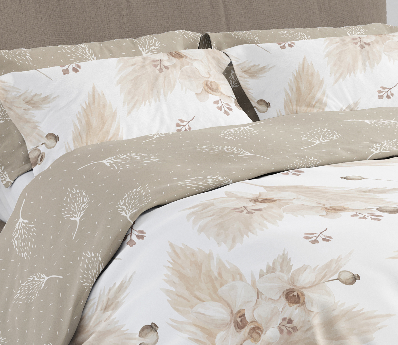 Pamut szatén ágyneműhuzat-garnitúra. A szett tartalmaz egy paplanhuzatot és két párnahuzatot.