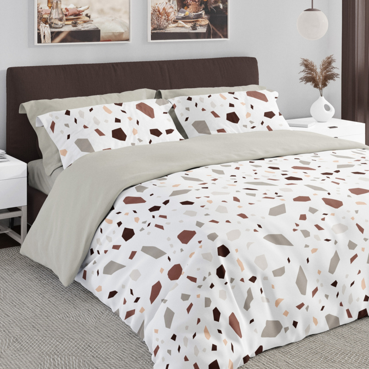 Pamut szatén ágyneműhuzat-garnitúra. A szett tartalmaz egy paplanhuzatot és két párnahuzatot.