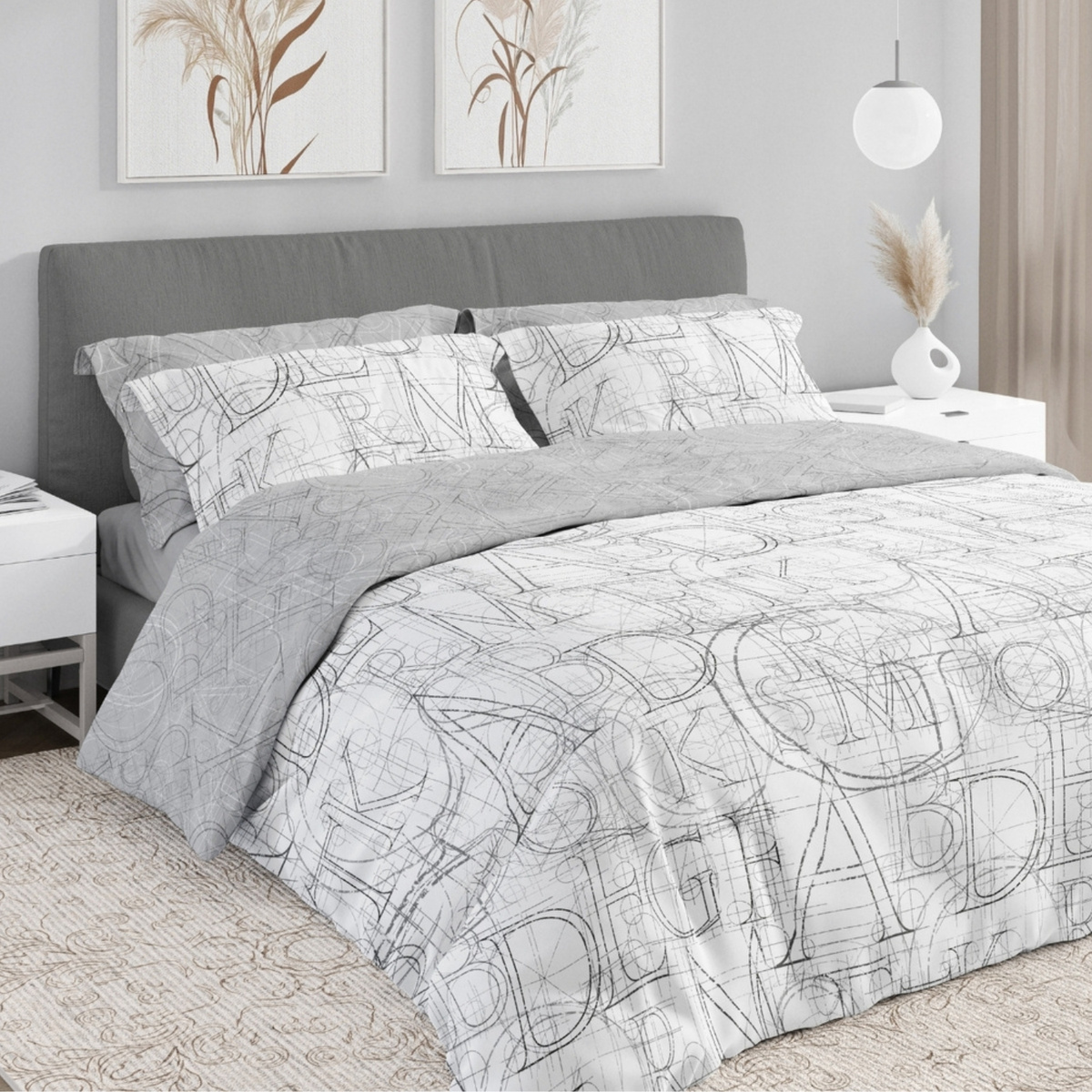 Pamut szatén ágyneműhuzat-garnitúra. A szett tartalmaz egy paplanhuzatot és két párnahuzatot.