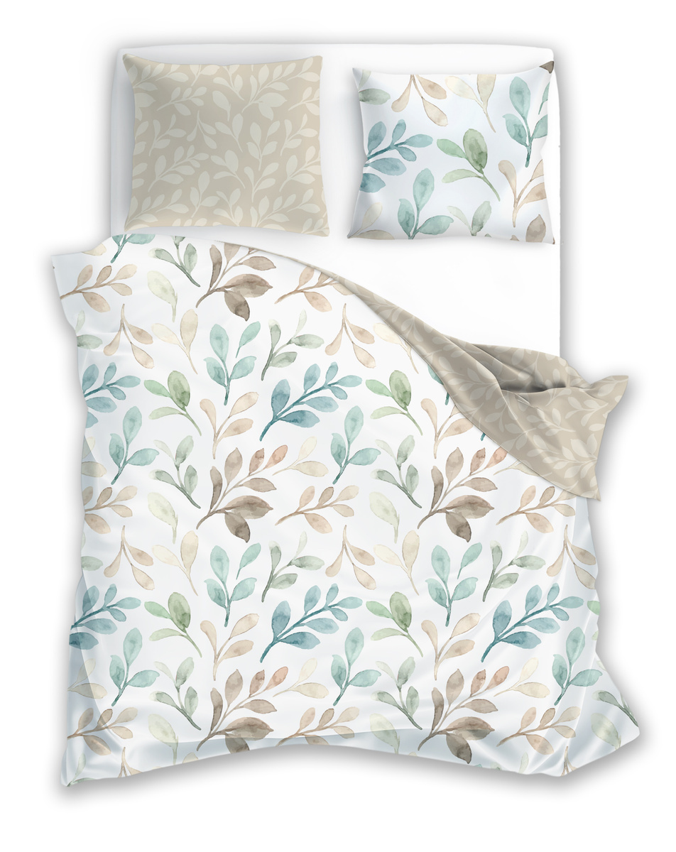 Pamut szatén ágyneműhuzat-garnitúra. A szett tartalmaz egy paplanhuzatot és két párnahuzatot.