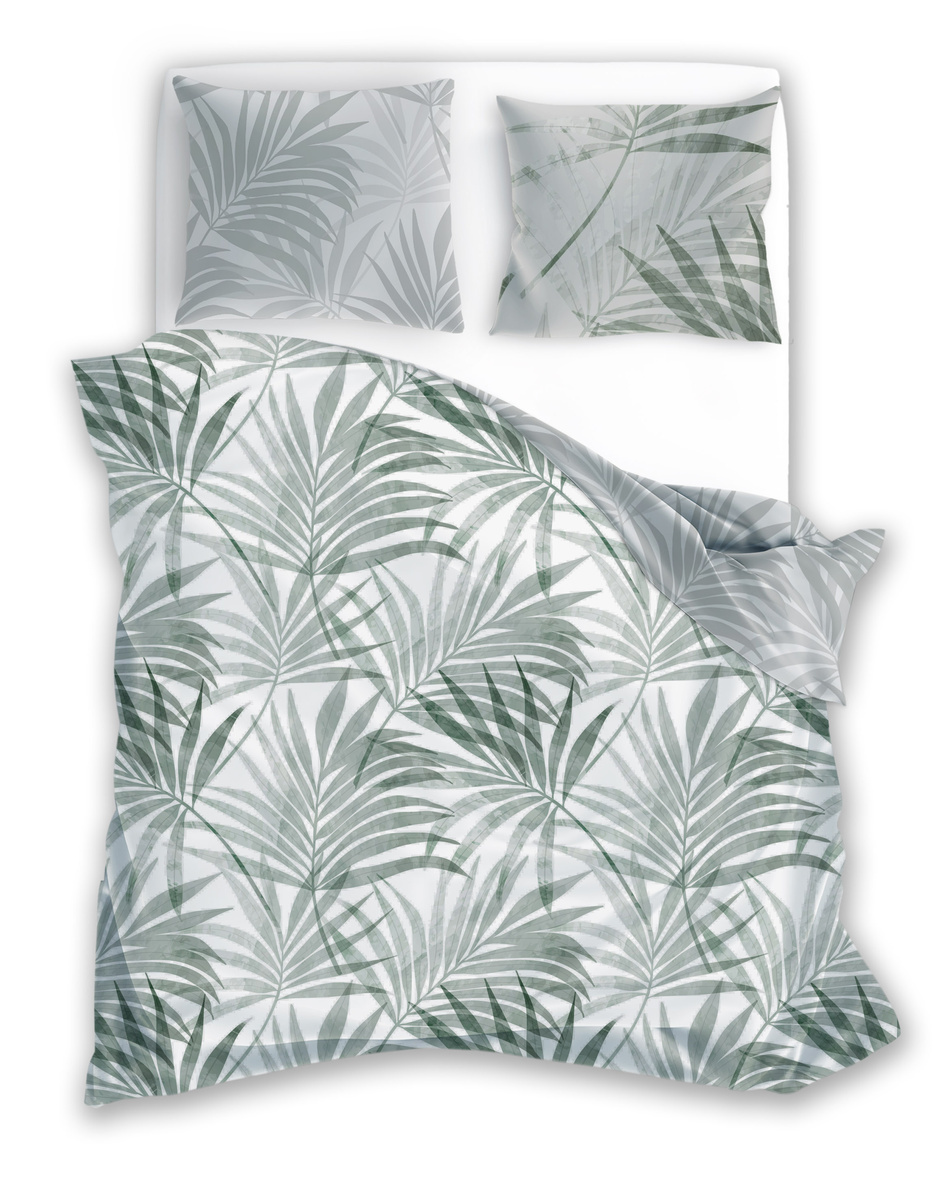 Pamut szatén ágyneműhuzat-garnitúra. A szett tartalmaz egy paplanhuzatot és két párnahuzatot.