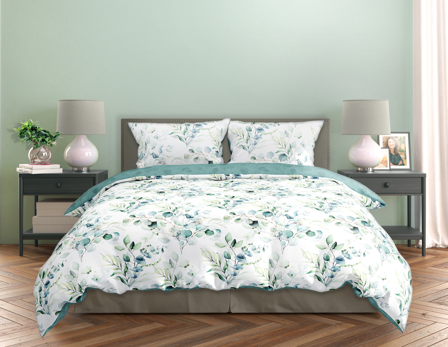Pamut szatén ágyneműhuzat-garnitúra. A szett tartalmaz egy paplanhuzatot és két párnahuzatot.
