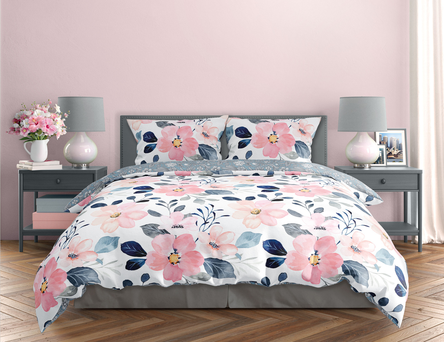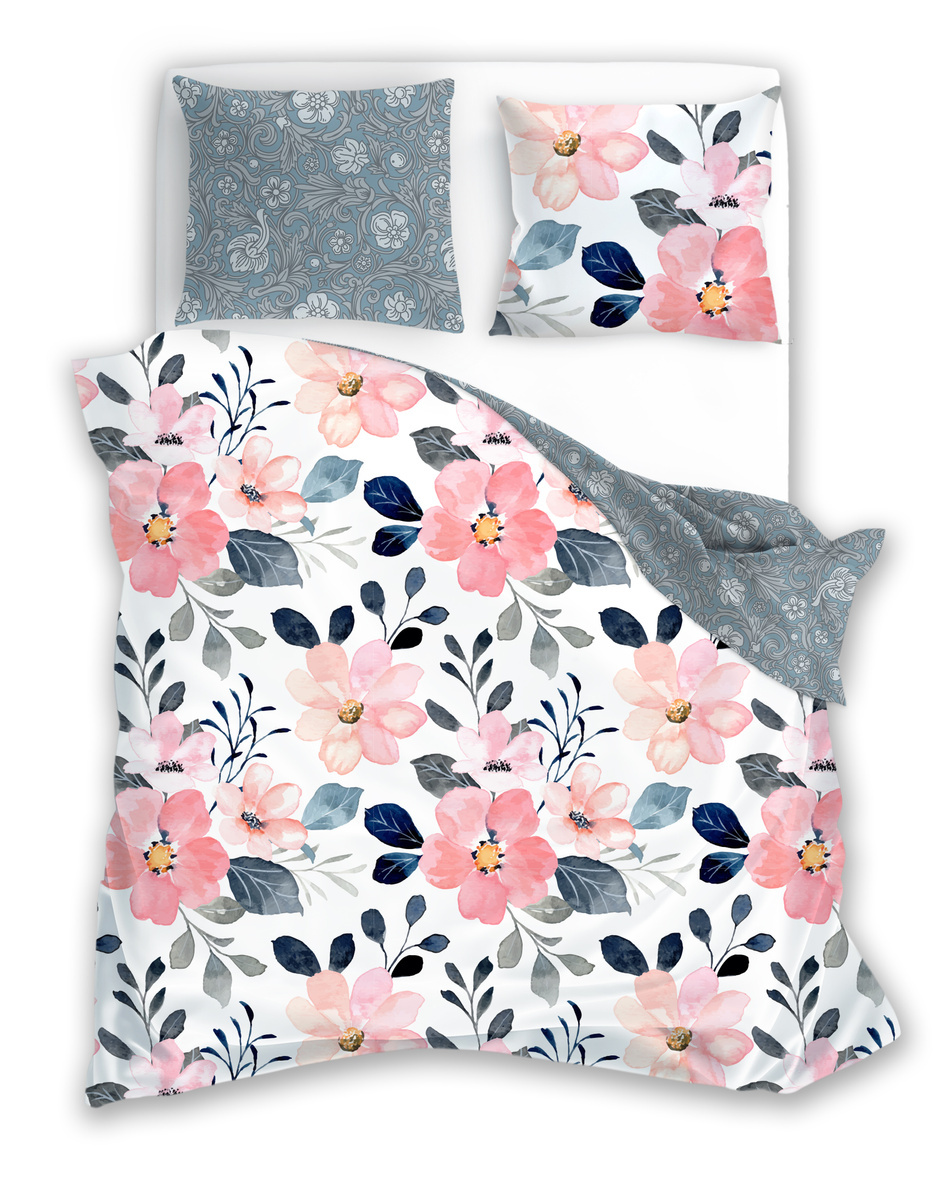 Pamut szatén ágyneműhuzat-garnitúra. A szett tartalmaz egy paplanhuzatot és két párnahuzatot.