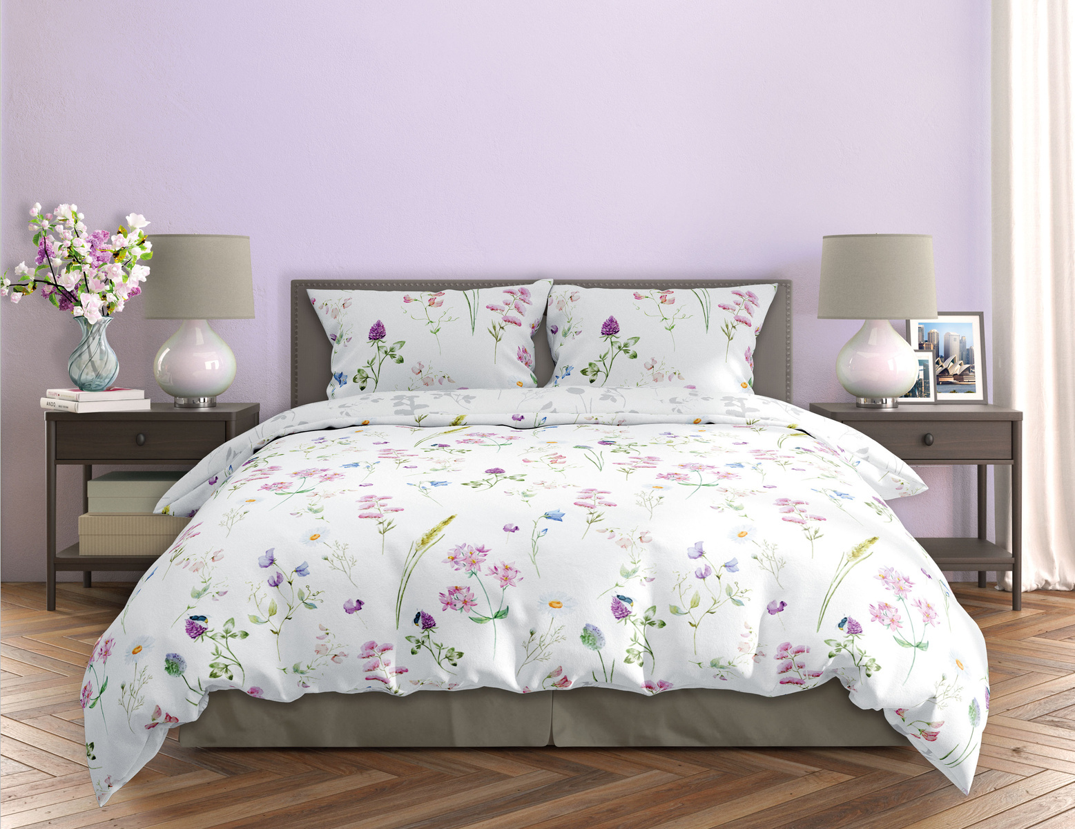 Pamut szatén ágyneműhuzat-garnitúra. A szett tartalmaz egy paplanhuzatot és két párnahuzatot.