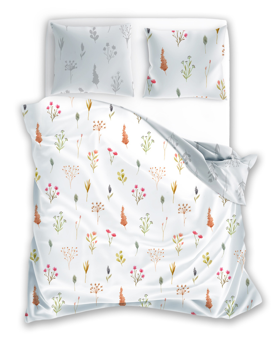 Pamut szatén ágyneműhuzat-garnitúra. A szett tartalmaz egy paplanhuzatot és két párnahuzatot.