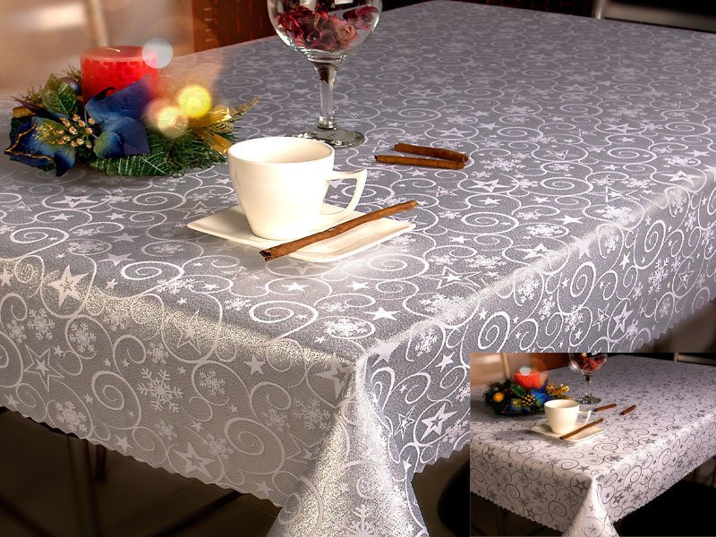 Dwustronne, praktyczne i atrakcyjne obrusy poliestrowe z powłoką plamoodporną. Powłoka nie pozwala na wchłanianie płynów i chroni obrusy przed trwałym zabrudzeniem. Tkanina idealnie układa sie na krawędziach stołu. Polska tkanina i produkcja. Zamówienia rozmiarów niestandardowych realizujemy na specjalne życzenie. Skład: 84% PES (poliester) / 16% NITKA METALIZOWANA. Temperatura prania 30°C, prasowania 250°C. Gramatura 185 gsm. Oeko-Tex Standard 100.