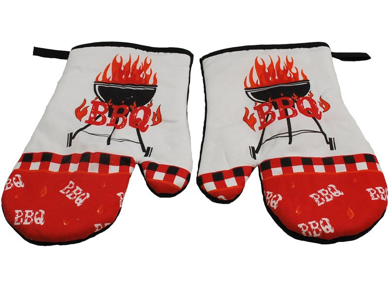 Komplet 2 rękawic kuchennych z nadrukowanym motywem z magnesem. Rękawice chronią przed poparzeniem. Rozmiar rękawic: 16x27 cm. Materiał 90% poliester, 10% bawełna z nadrukiem, wypełnienie z włókniny poliestrowej. Komplet złożony z 2 szt. rękawic (prawa i lewa). Temperatura prania 30°C.