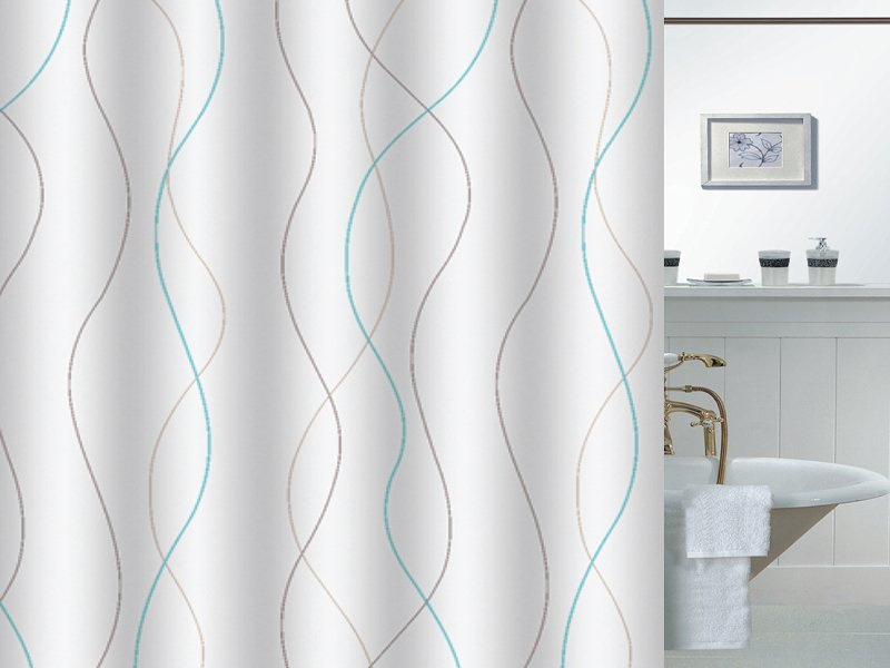 Zasłony prysznicowe na przelotkach. Wykonane z nieprzepuszczającego wody poliestru. W dole zasłony wszyty obciążnik w celu lepszego ułożenia. W komplecie 12 kółek do zawieszenia. Praktyczne i łatwe do zawieszenia. Zasłony pomogą utrzymać porządek i suchą podłogę w łazience. 100% poliester.